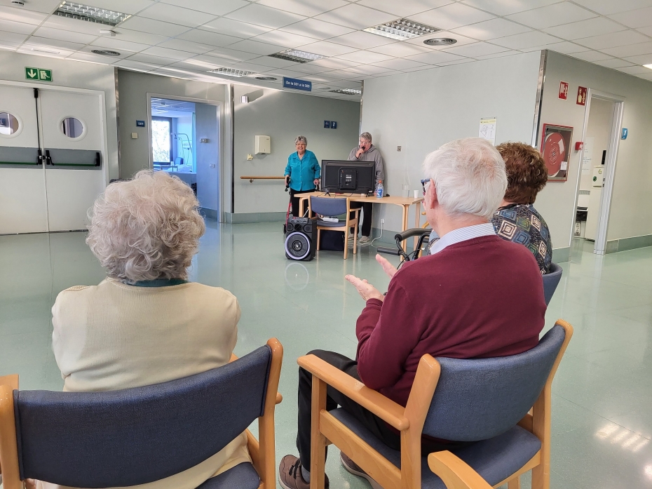 El Duet Mayte i Josep durant la seva actuació de karaoke al Centre Sociosanitari Bernat Jaume