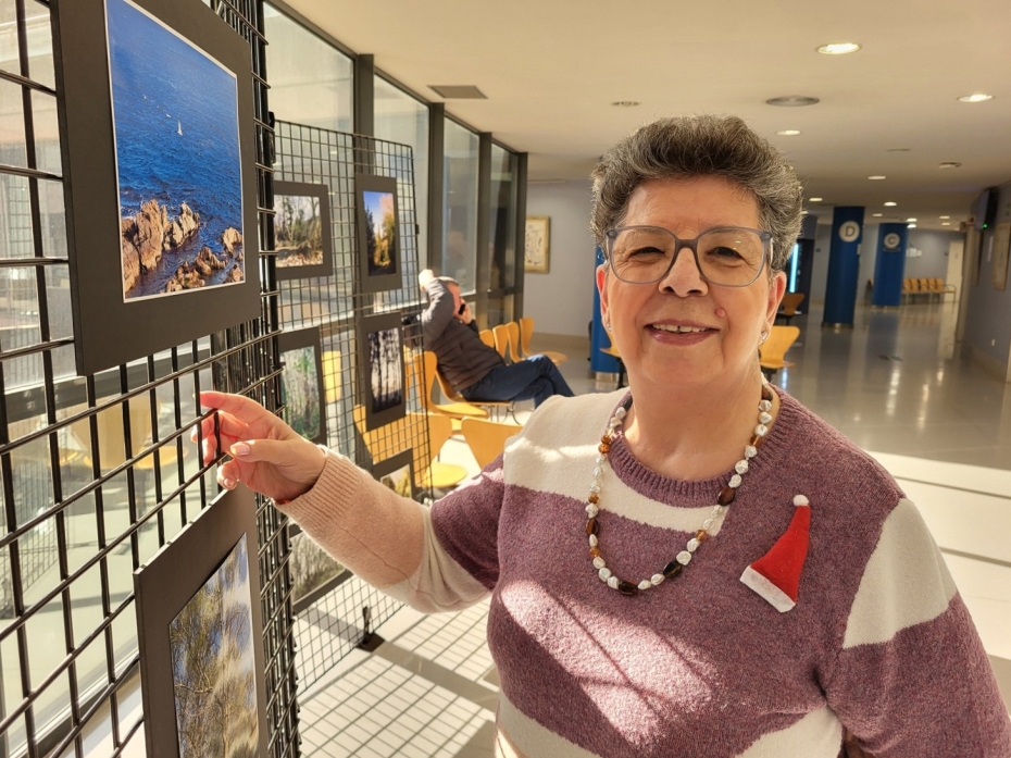 Paquita Dorca, davant de les seves fotografies, que estan exposades a Consultes Externes de l’Hospital de Figueres (‘Natura de l’Alt Empordà’)