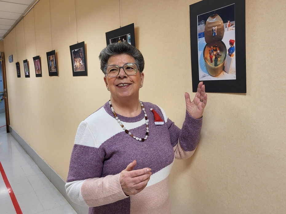 Paquita Dorca, davant de les seves fotografies, que estan exposades a l’Hospital d’Atenció Intermèdia Bernat Jaume (‘Pessebres’)
